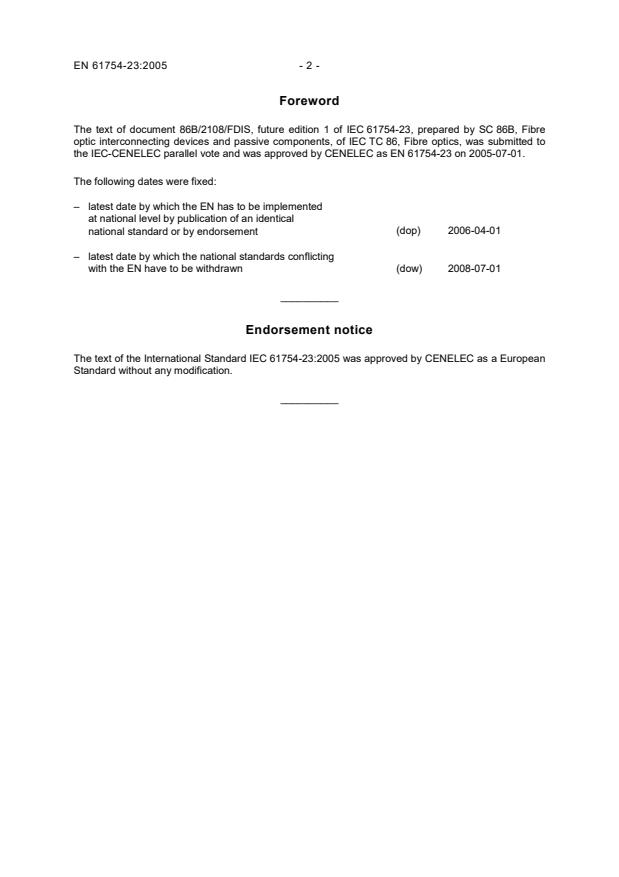 the IEC-CENELEC parallel vote and was approved by CENELEC as EN 61754-23 on 2005-07-01.