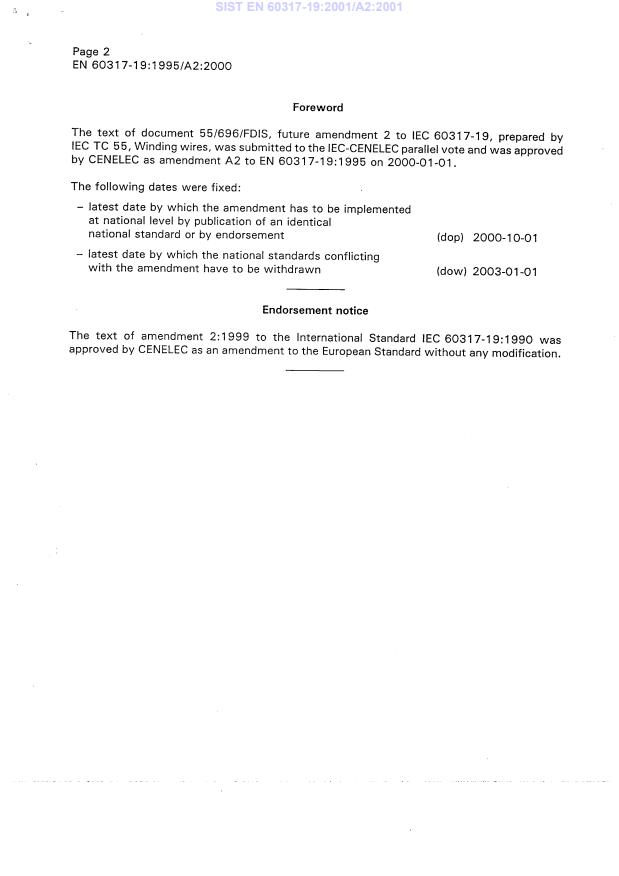 EN 60317-19:1995/A2:2000 is classified under the following ICS (International Classification for Standards) categories: 29.060.10 - Wires. The ICS classification helps identify the subject area and facilitates finding related standards.