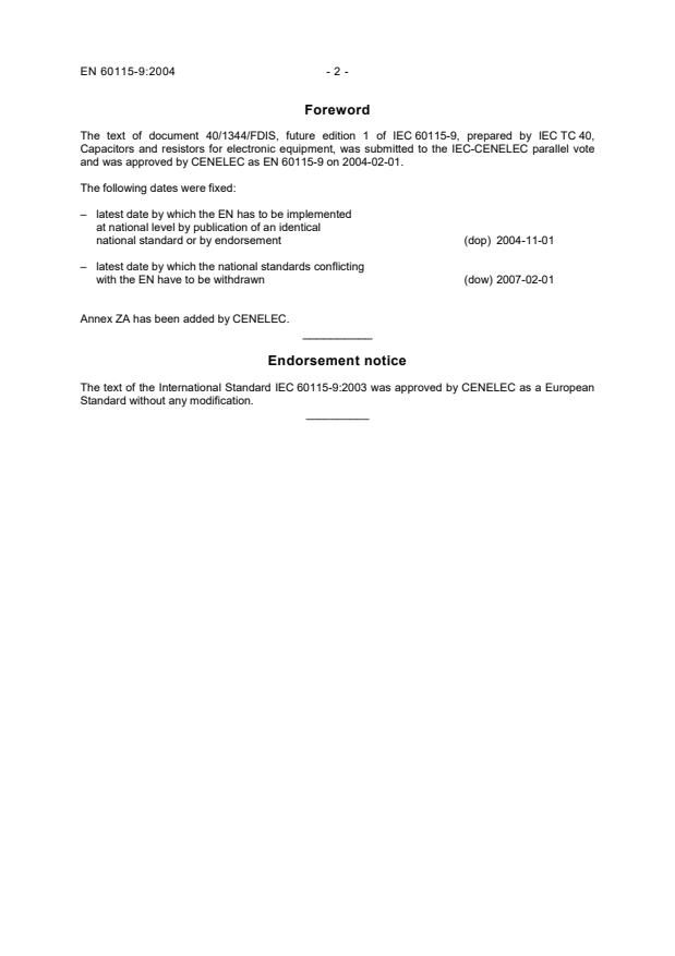 and was approved by CENELEC as EN 60115-9 on 2004-02-01.