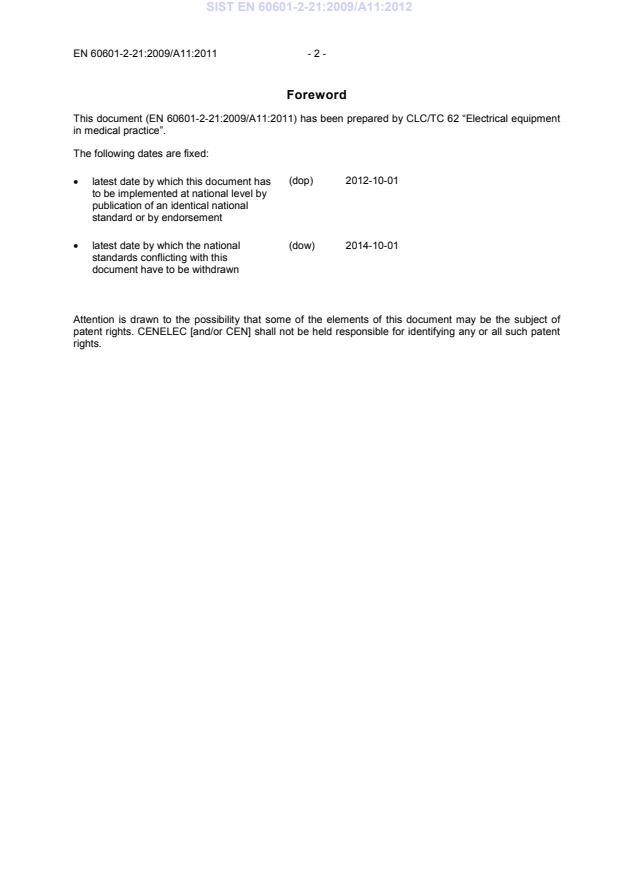 Ta slovenski standard je istoveten z: EN 60601-2-21:2009/A11:2011
