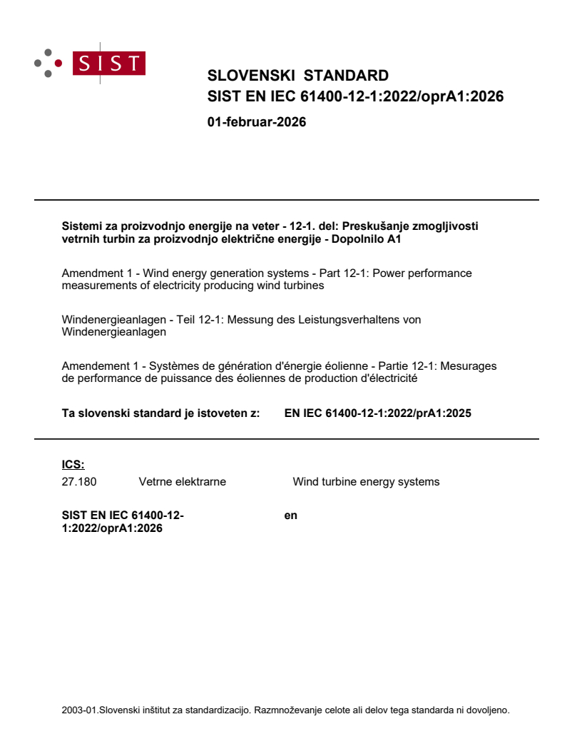 Ta slovenski standard je istoveten z: EN IEC 61400-12-1:2022/prA1:2025