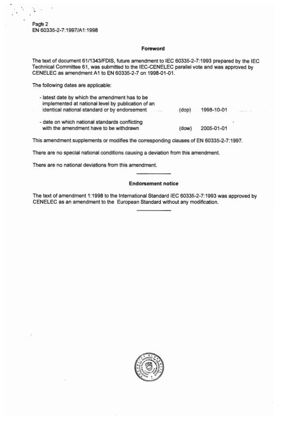 EN following parallel vote * Superseded by EN 60335-2-7:2001