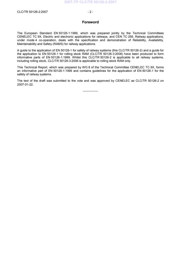 Ta slovenski standard je istoveten z: CLC/TR 50126-2:2007