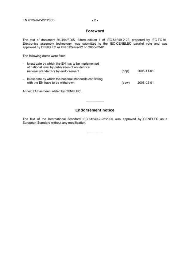EN 61249-2-22:2005 is classified under the following ICS (International Classification for Standards) categories: 31.180 - Printed circuits and boards. The ICS classification helps identify the subject area and facilitates finding related standards.