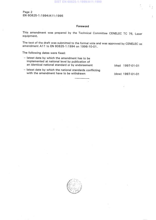 EN 60825-1:1999/A11:1999