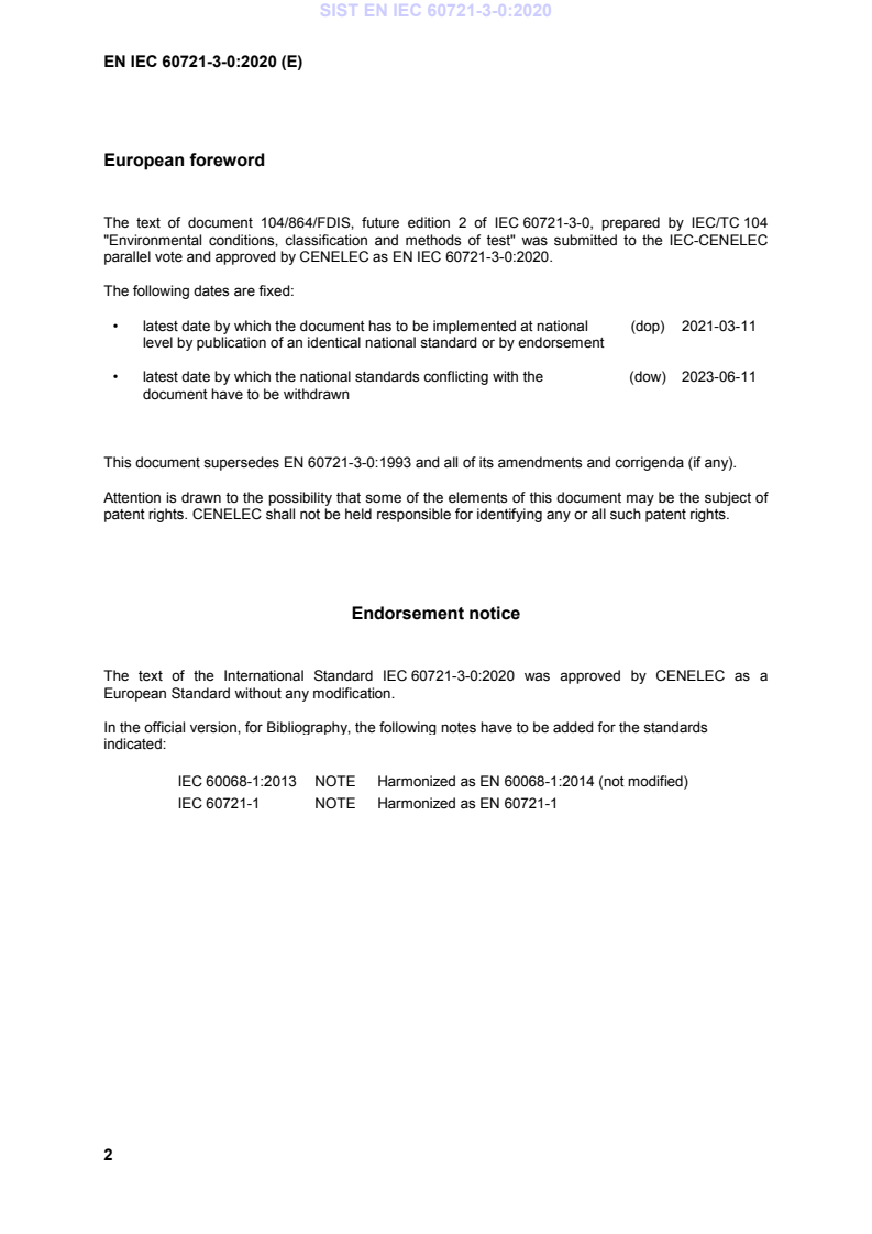parallel vote and approved by CENELEC as EN IEC 60721-3-0:2020.