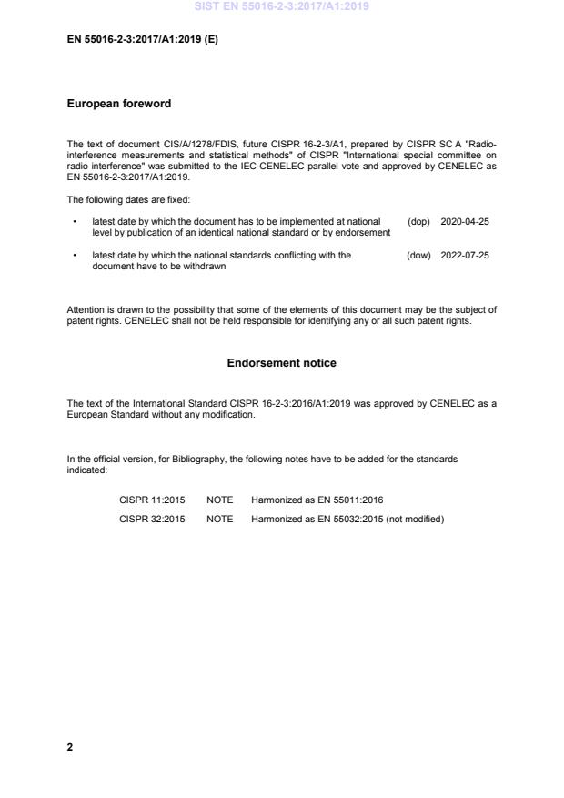 This amendment A1 modifies the European Standard EN 55016-2-3:2017; it was approved by CENELEC on 2019-07-30. CENELEC
