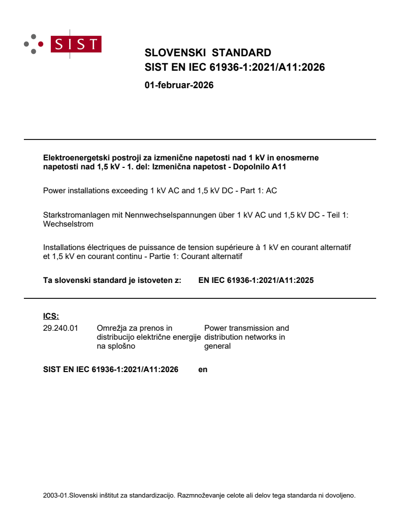 Ta slovenski standard je istoveten z: EN IEC 61936-1:2021/A11:2025