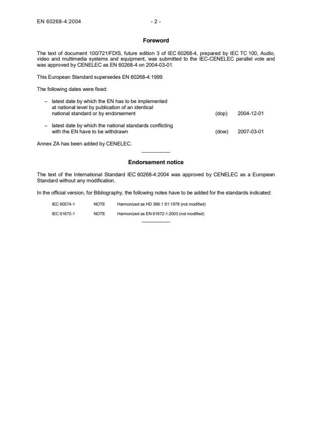 The text of the International Standard IEC 60268-4:2004 was approved by CENELEC as a European