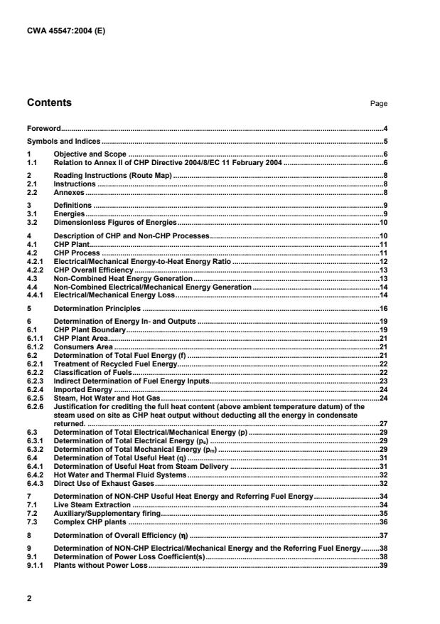 CWA 45547:2004 is a technical report published by CLC. Its full title is "Manual for Determination of Combined Heat and Power (CHP)". This standard covers: CHP can make significant fuel and emissions savings over conventional, separate forms of power generation and heat-only boilers. The generation of electricity from power stations is generally at efficiencies in the range 30-55%, based on the Net Calorific Value (NCV) or Lower Heating Value (LHV) of the fuel. Further losses occur in the transmission and distribution of electricity to customers. This means that 45-70% of the energy content of the fuel is not usefully employed. This unutilised energy content is rejected as heat directly to the atmosphere or into seas or rivers. The generation of electricity and the recovery of heat in CHP plants typically achieve overall efficiencies of 70-90% and above, corresponding to efficiencies of heat only boilers. The higher the overall efficiency and the power to heat ratio, the more effective the CHP process. Unlike conventional methods of electricity generation, in order to achieve such high overall efficiencies, some of the heat cogenerated in a CHP Scheme is usefully employed in industrial processes or for heating and hot water in buildings. The heat used in this way displaces heat that would otherwise have to be supplied by burning additional fuel in boilers or other direct-fired equipment and so also leads directly to a reduction in CO2-emissions. The development of CHP plays a crucial role in the European energy policy for reducing CO2- emissions. The determination of CHP products (heat and power outputs) is important not only for the CHP Directive [1] but also for the European Emissions Trading Scheme [2], State Aid guidelines for environmental improvement and the energy taxation Directive [3].