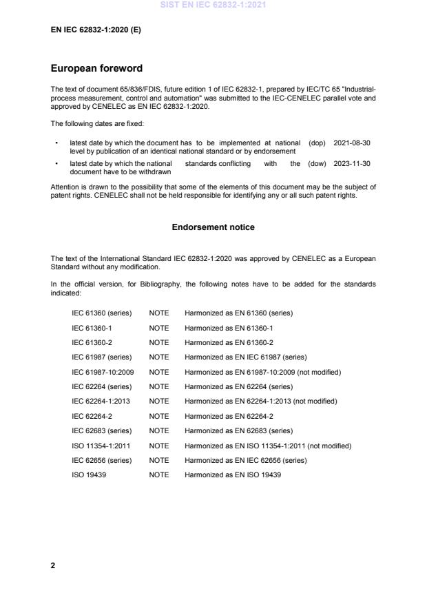 - EN IEC 62832-2 (Model elements) - defines detailed model elements referenced by Part 1.