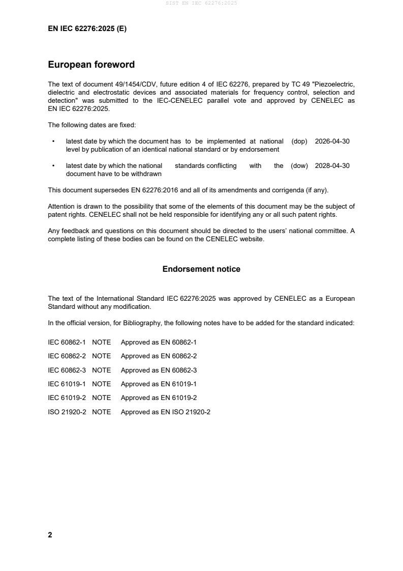 ICS 31.140 Supersedes EN 62276:2016