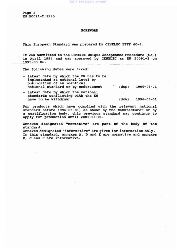 Ta slovenski standard je istoveten z: EN 50091-2:1995