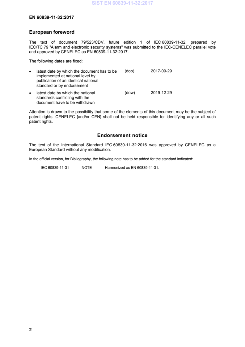 Ta slovenski standard je istoveten z: EN 60839-11-32:2017