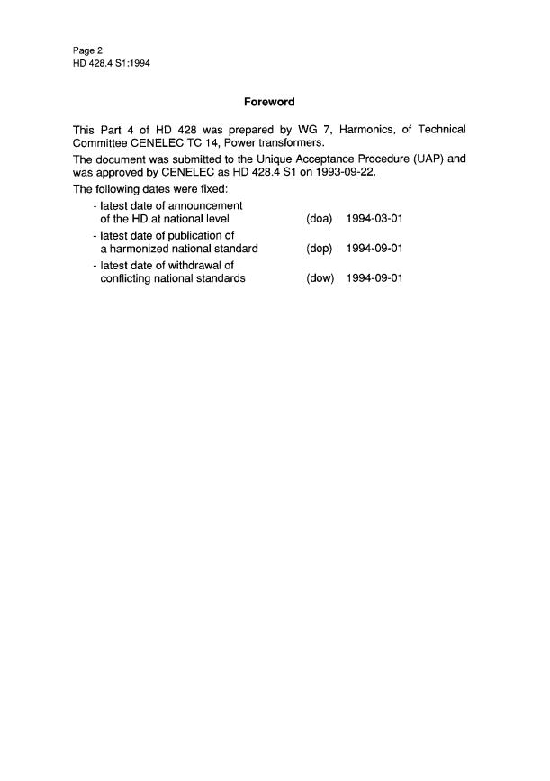 HD 428.4 S1:1994 is a standardization document published by CLC. Its full title is "Three phase oil-immersed distribution transformers 50 Hz, from 50 to 2500 kVA with highest voltage for equipment not exceeding 36 kV - Part 4: Determination of the power rating of a transformer loaded with non-sinusoidal currents". This standard covers: Superseded by EN 50464-3:2007