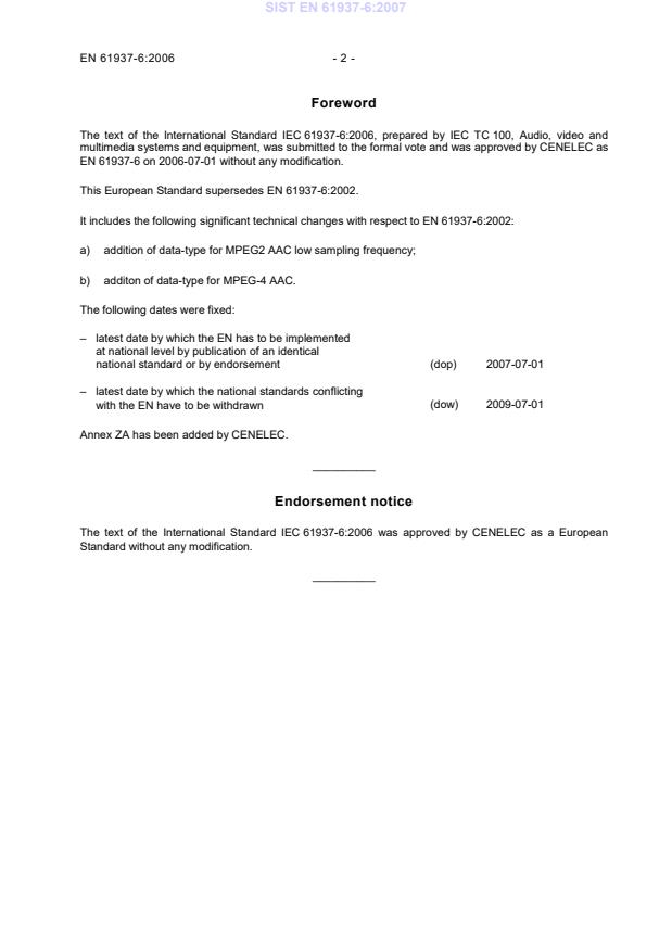 Ta slovenski standard je istoveten z: EN 61937-6:2006