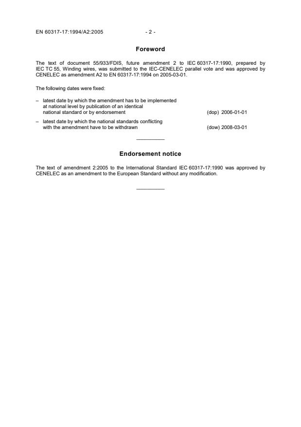 CENELEC as amendment A2 to EN 60317-17:1994 on 2005-03-01.