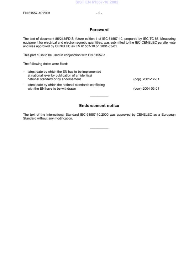 Ta slovenski standard je istoveten z: EN 61557-10:2001