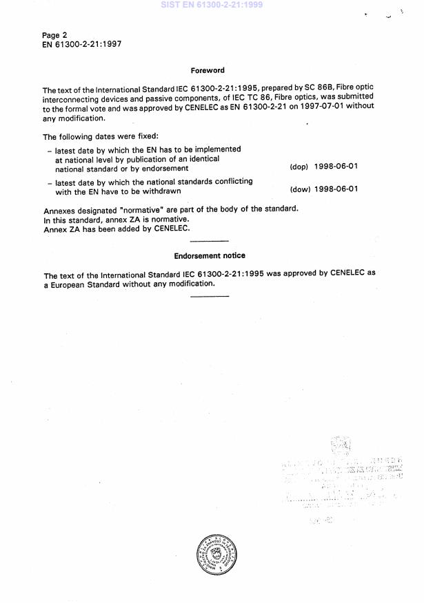 Ta slovenski standard je istoveten z: EN 61300-2-21:1997