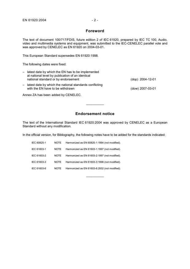 ICS 31.260; 33.100 Supersedes EN 61920:1998