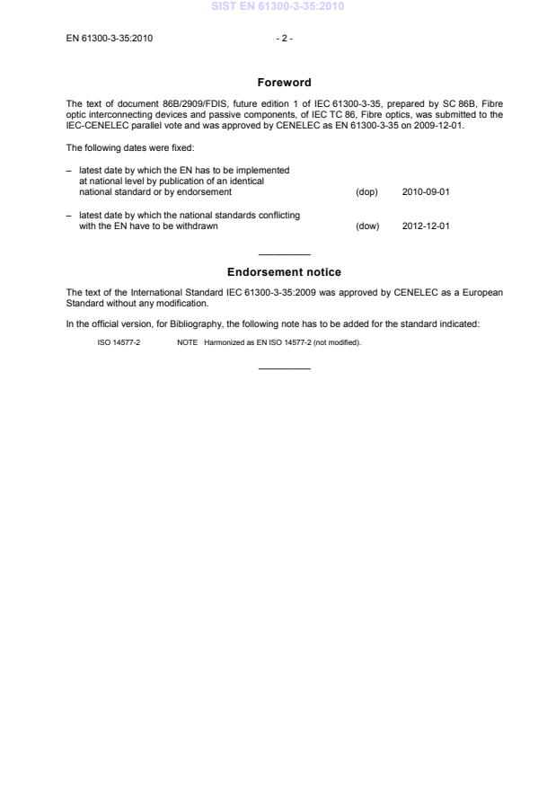 IEC-CENELEC parallel vote and was approved by CENELEC as EN 61300-3-35 on 2009-12-01.