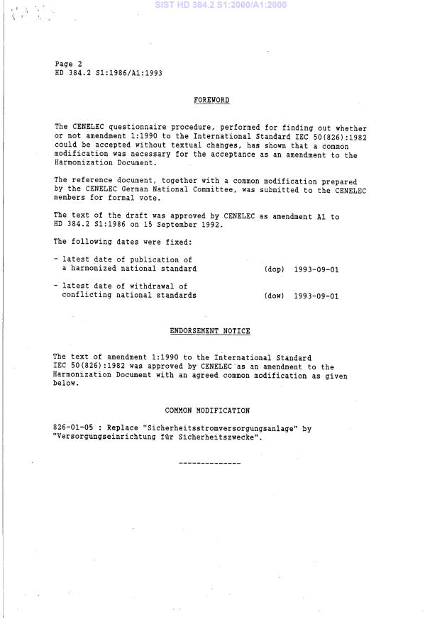 HD 384.2 S1:1986/A1:1993 is a amendment published by CLC. Its full title is "International electrotechnical vocabulary - Chapter 826: Electrical installations of buildings". This standard covers: Superseded by HD 384.2 S2:2001