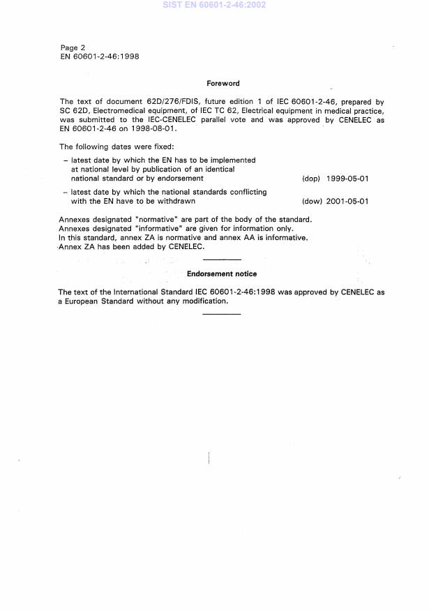 Ta slovenski standard je istoveten z: EN 60601-2-46:1998