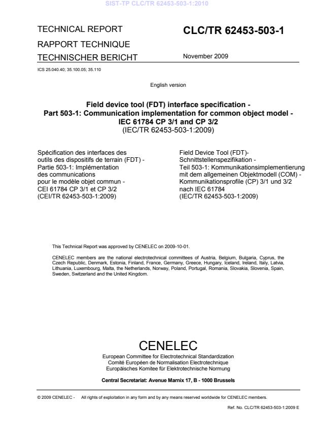 Ref. No. CLC/TR 62453-503-1:2009 E