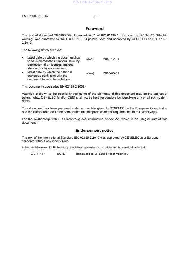 welding" was submitted to the IEC-CENELEC parallel vote and approved by CENELEC as EN 62135-