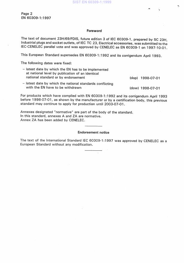 EN 60309-1:1997 has the following relationships with other standards: It is inter standard links to EN 60309-1:1992, EN 60309-1:1999. Understanding these relationships helps ensure you are using the most current and applicable version of the standard.