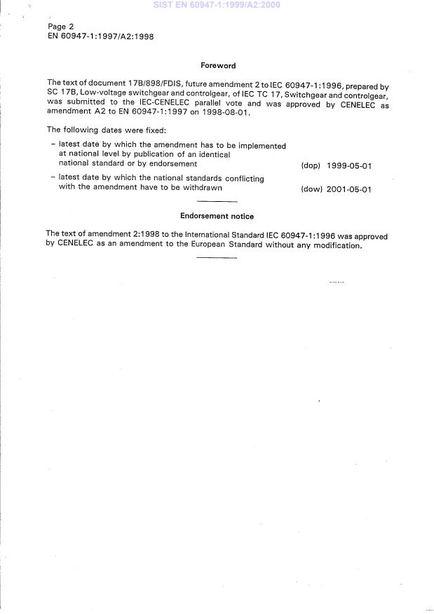 Low-voltage switchgear and controlgear - Part 1: General rules - Amendment A2 (IEC 60947-1:1996/A2:1998)