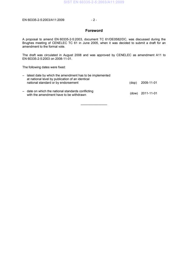 Ta slovenski standard je istoveten z: EN 60335-2-5:2003/A11:2009