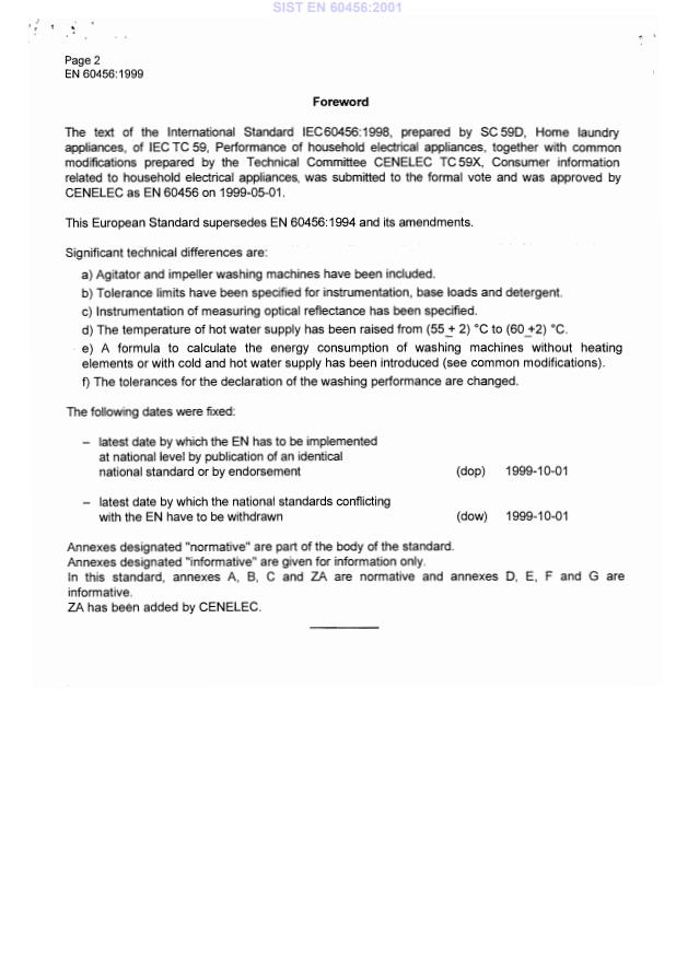 EN 60456:2005 - Clothes washing machines for household use - Methods for measuring the performance - Effective Date