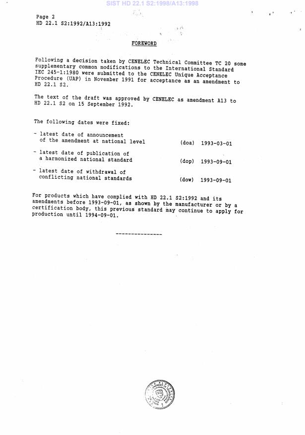 Ta slovenski standard je istoveten z: HD 22.1 S2:1992/A13:1992