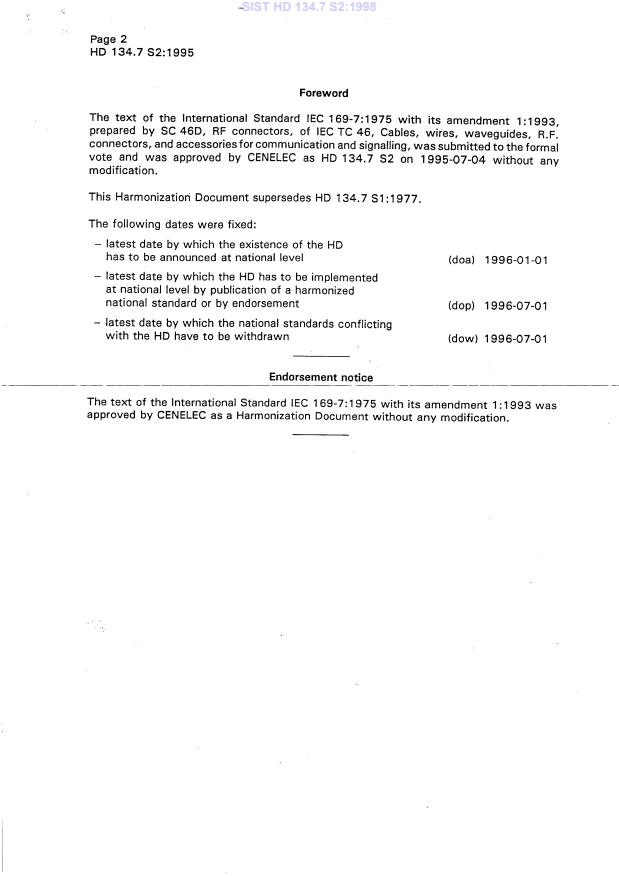 HD 134.7 S2:1995 has the following relationships with other standards: It is inter standard links to EN 60169-21:1997. Understanding these relationships helps ensure you are using the most current and applicable version of the standard.