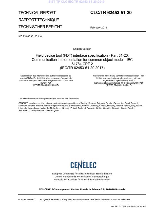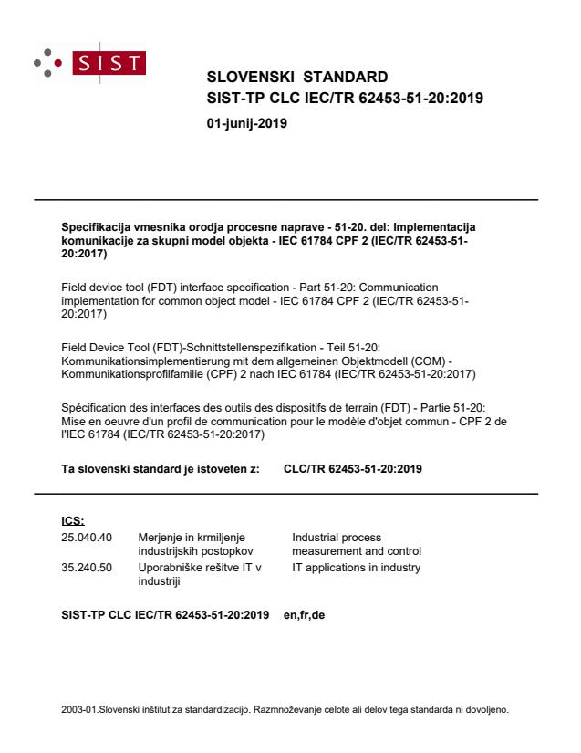 Ta slovenski standard je istoveten z: CLC/TR 62453-51-20:2019