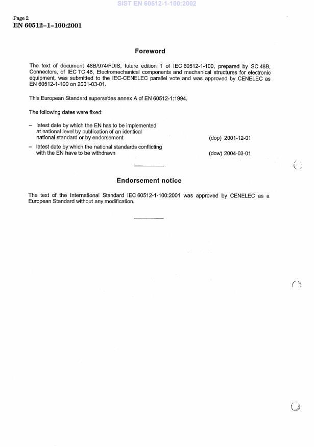 Ta slovenski standard je istoveten z: EN 60512-1-100:2001