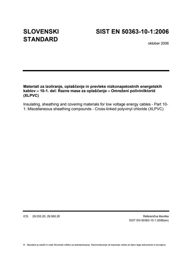 Materiali za izoliranje, oplaščenje in prevleke nizkonapetostnih energetskih kablov – 10-1. del: Razne mase za oplaščenje – Omreženi polivinilklorid (XLPVC)