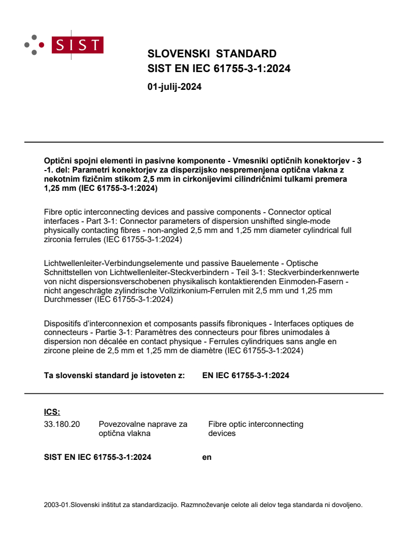 Ta slovenski standard je istoveten z: EN IEC 61755-3-1:2024