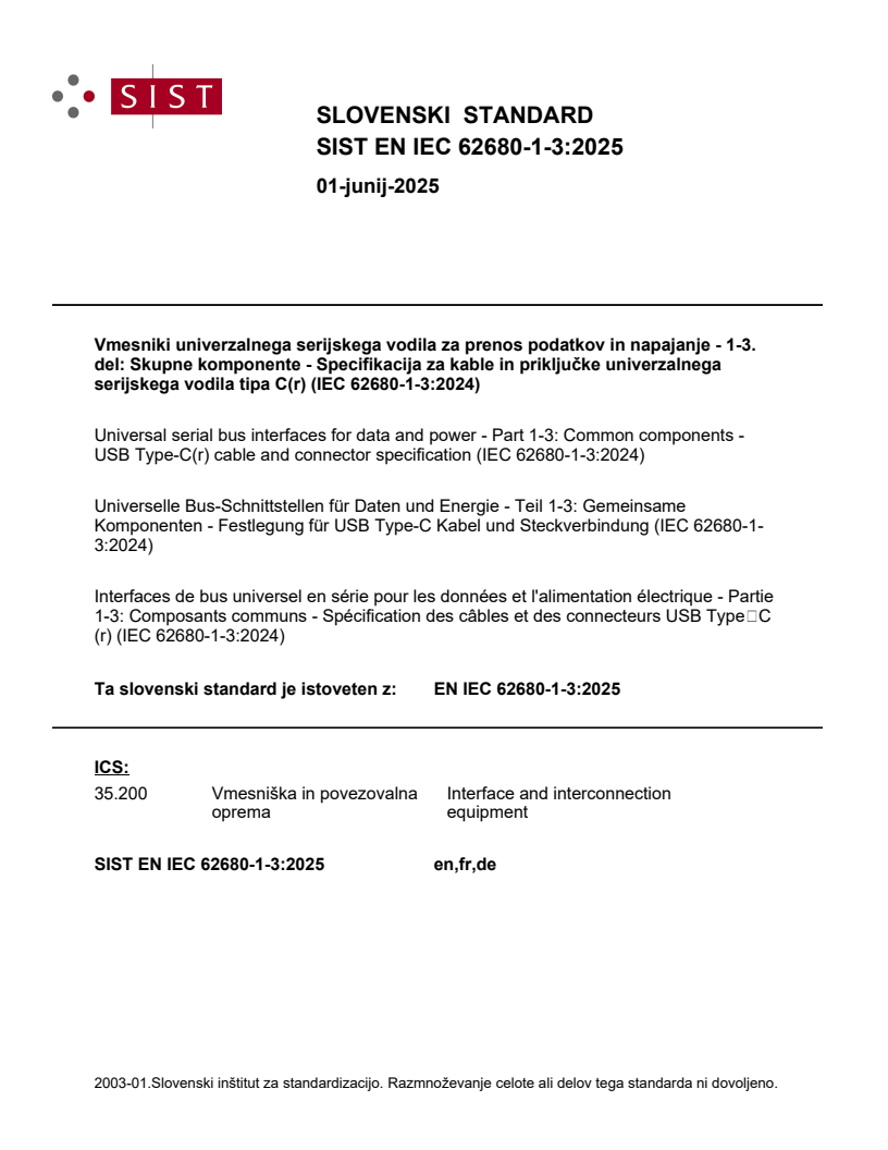 Ta slovenski standard je istoveten z: EN IEC 62680-1-3:2025