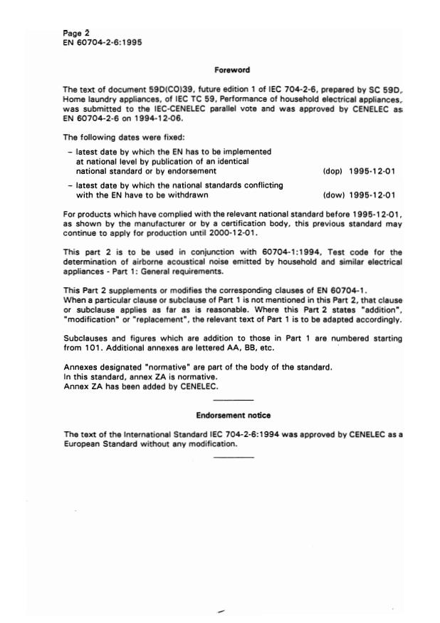 EN 60704-2-6:1995 is a standard published by CLC. Its full title is "Test code for the determination of airborne acoustical noise emitted by household and similar electrical appliances - Part 2: Particular requirements for tumble-dryers". This standard covers: EN following parallel vote * Superseded by EN 60704-2-6:2004
