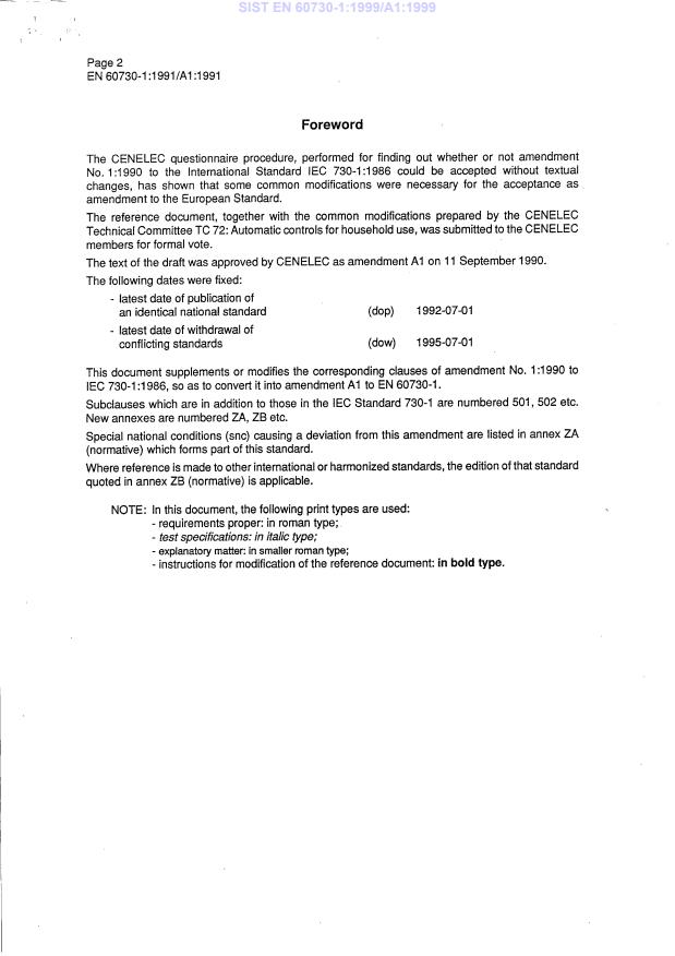 Ta slovenski standard je istoveten z: EN 60730-1:1991/A1:1991