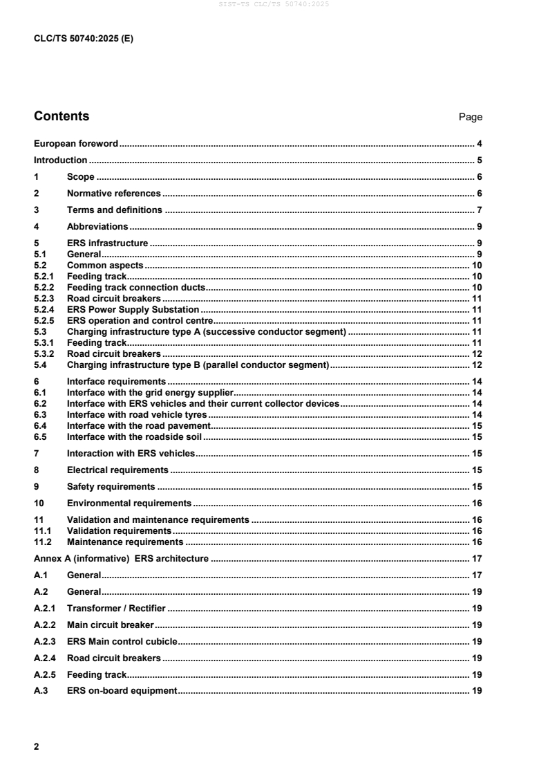 Keywords: CLC/TS 50740:2025, ground-based feeding systems, Electric Road System (ERS), dynamic electric road charging, feeding track, current collector device, electrical safety, stray current protection, infrastructure interfaces, validation requirements.