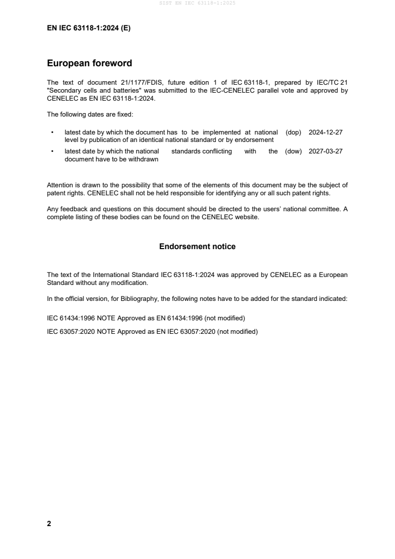 IEC 63118-1 has been prepared by IEC technical committee 21: Secondary cells and batteries.