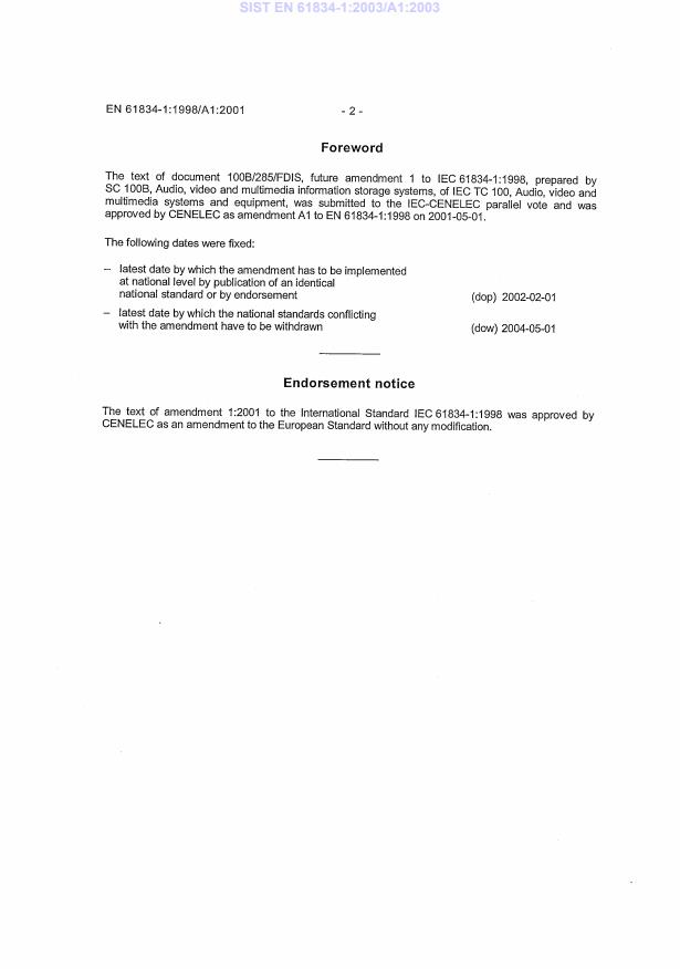 EN 61834-1:1998/A1:2001
