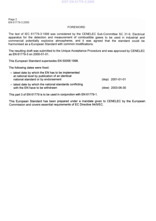 EN 61779-3:2000 has the following relationships with other standards: It is inter standard links to EN 50056:1998, EN 60079-29-1:2007. Understanding these relationships helps ensure you are using the most current and applicable version of the standard.