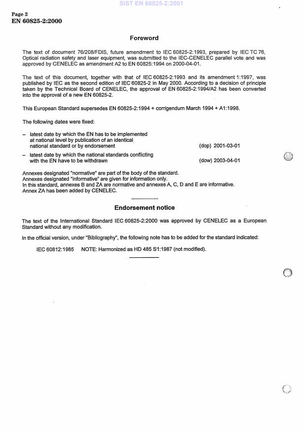 EN 60825-2:1994 - Safety of laser products - Part 2: Safety of optical fibre communication systems - Effective Date