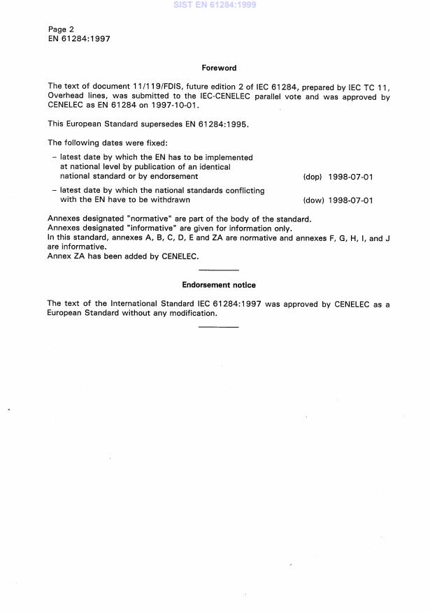 - National adoptions (e.g., SIST EN 61284:1999) and standards indexed under ICS 29.240.20 (power transmission and distribution lines)