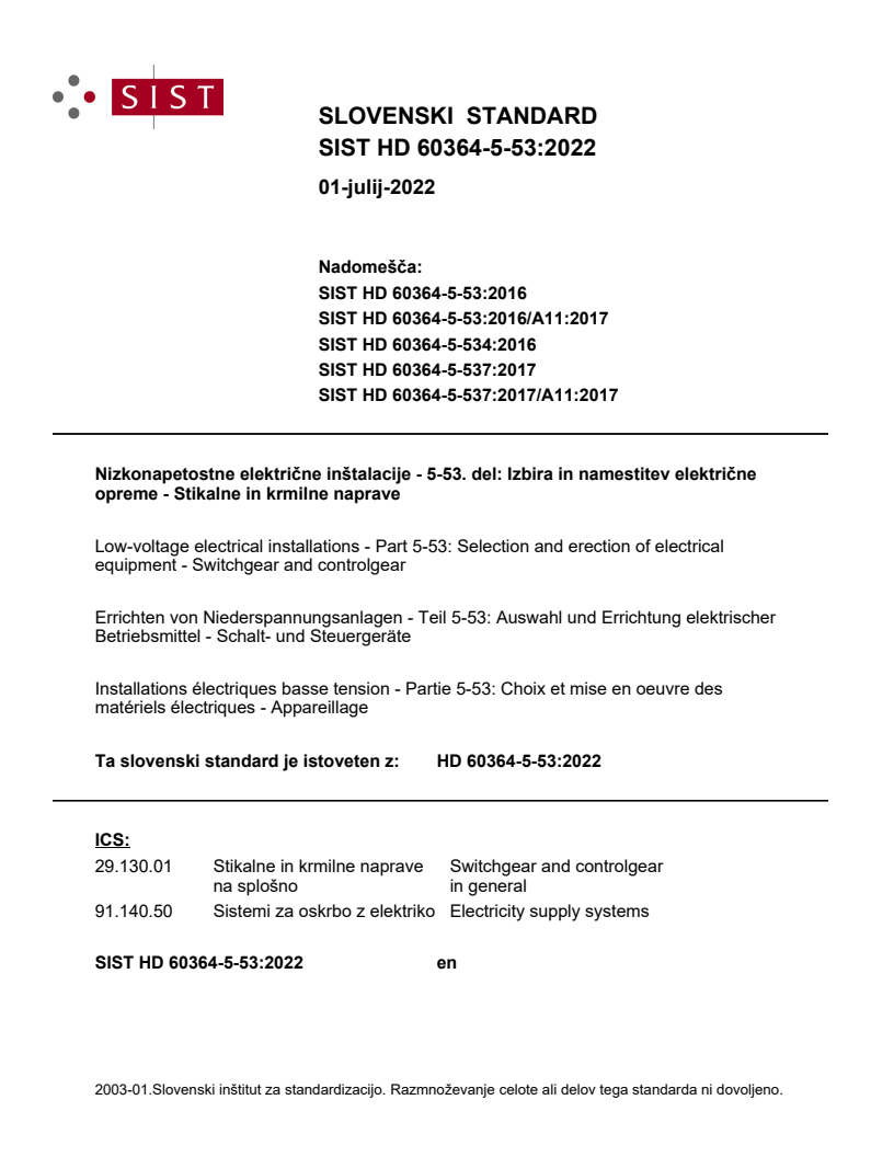 SIST HD 60364-5-53:2016