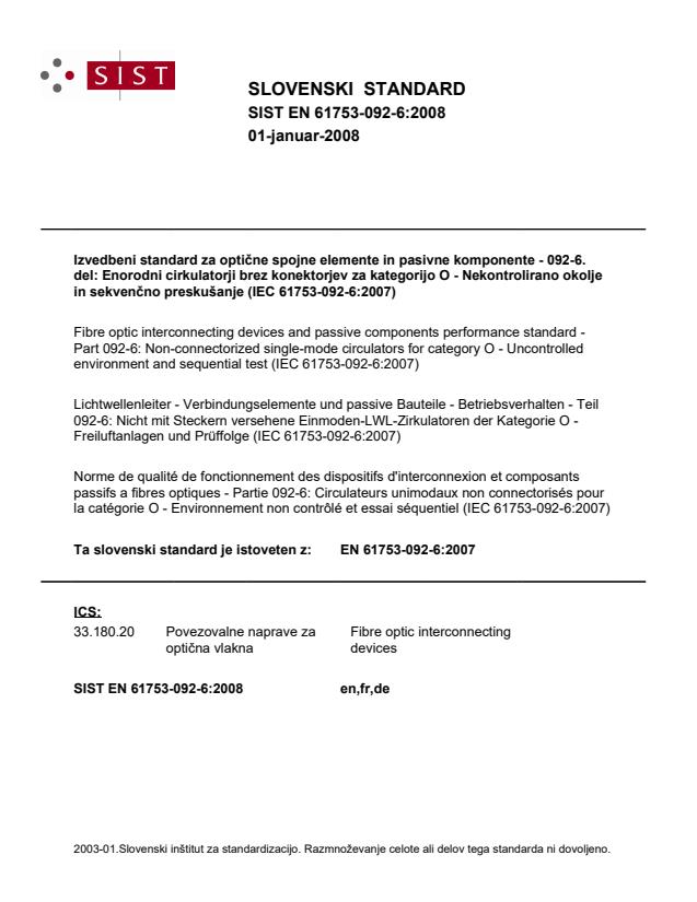 Ta slovenski standard je istoveten z: EN 61753-092-6:2007